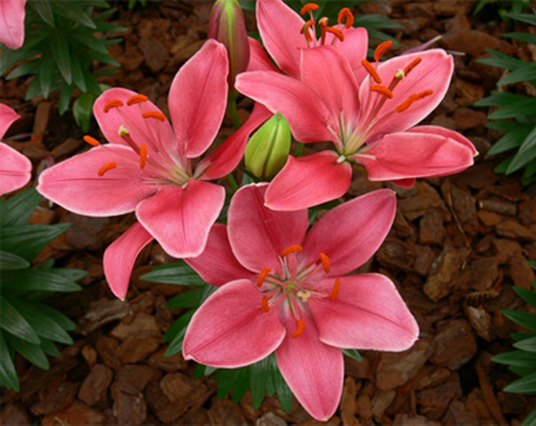 Цветки яркого розового цвета прекрасно смотрятся на фоне изумрудной зелени, в окружении светло-зеленых и темно-бордовых еще нераспустившихся бутонов. Лилия Баззер неприхотлива, быстро и легко размножается, цветет в конце июня – начале июля. Этот сорт подходит также и для выгонки.
