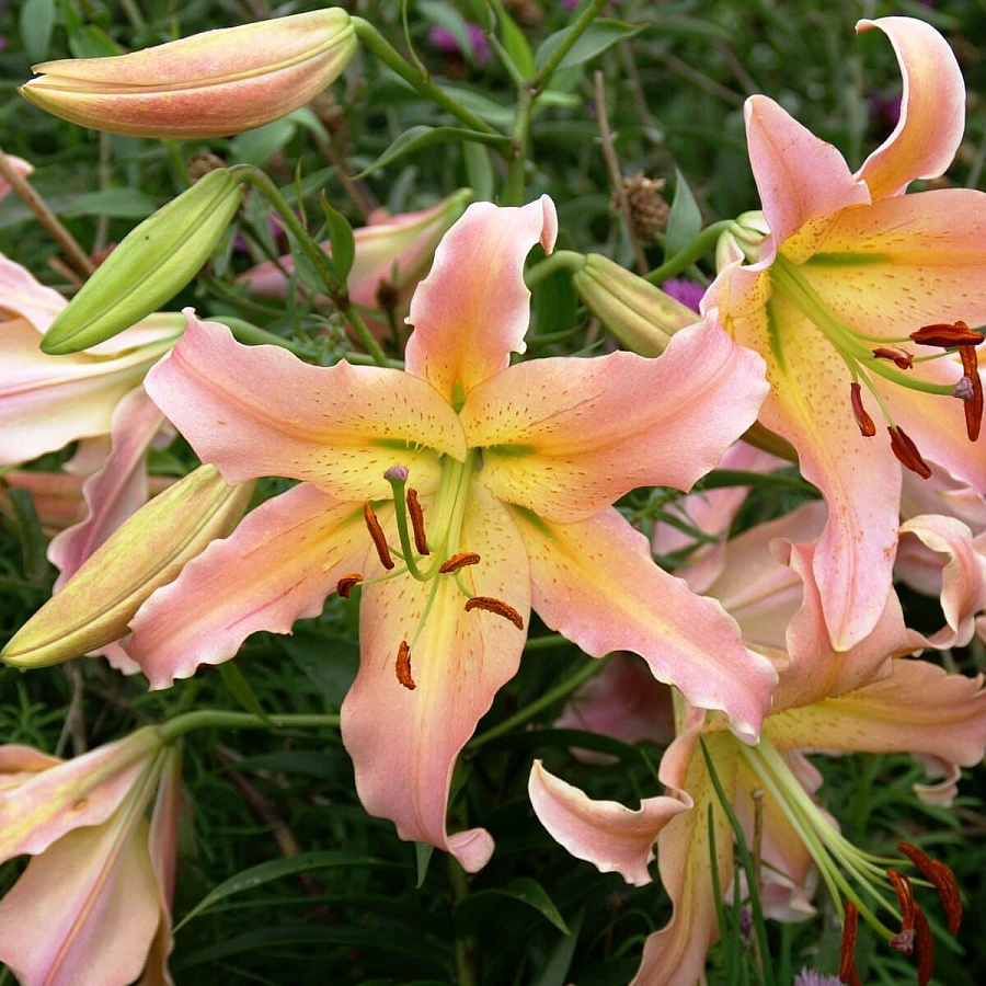 Лилия от-гибрид "Элюзив" - это волшебное растение, которое поразит вас своей красотой и изысканностью. Ее стебель достигает высоты от 120 до 180 см, а цветки радуют глаз лососево-розовым оттенком с желтым центром и белым контуром, украшенным мелким крапом. Листья лилии имеют зеленую окраску и прекрасно сочетаются с цветами.