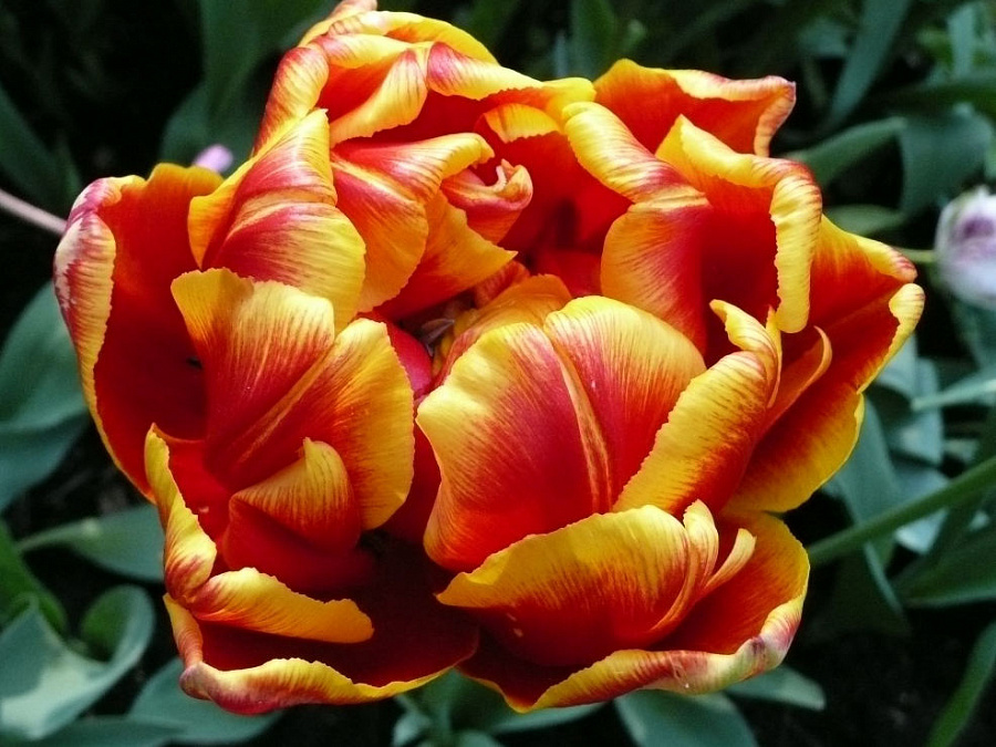 Окраска цветка : красного цвета с жёлтым краем
